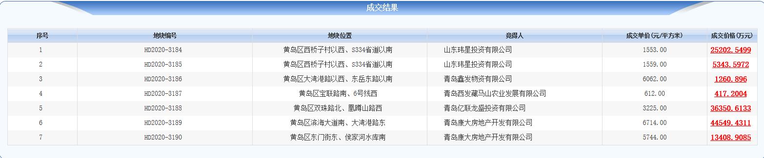 地塊編號HD2020-3184,地塊位於黃島區西橋子村以西、S334省道以南,土地面積12.69萬平(其中商品城鎮住宅用地分攤113242平,產權型人才公寓用地分攤9245平方米),規劃建築面積16.5萬平,起始價2.17億元,成交價2.52億元。
