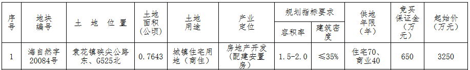 資料显示,該地塊編號為海自然字20084號。出讓面積7643㎡,起始價3250萬元,競買保證金650萬元,建築密度≤35%。
