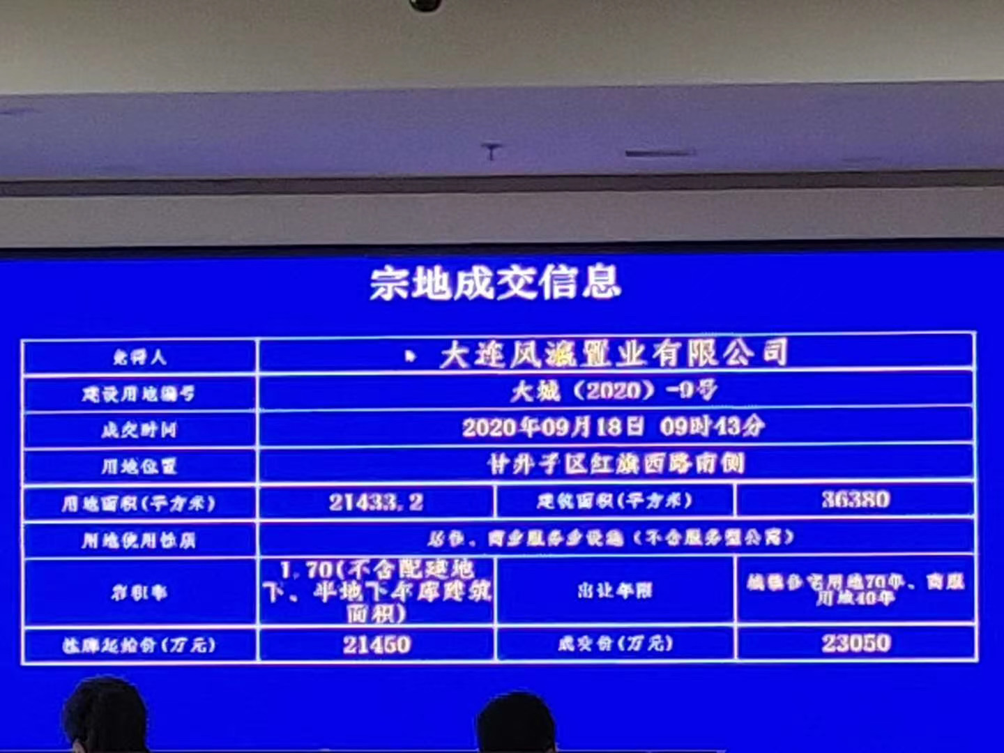 中國網地產訊 據大連市土地交易中心網站消息,9月18日,大連市成功出讓居住、商業服務用地,由大連鳳瀛置業有限公司()以2.30億元摘得。