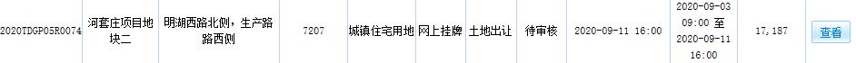 地塊編號2020TDGP05R0074,地塊名稱為河套庄項目地塊二,地塊位於明湖西路北側,生產路路西側,土地面積7207平,土地用途為住宅用地,出讓年限七十年,起始價1.59億元。