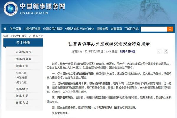 外交部領事司10月22日發布消息稱:近期,駐宋卡總領館駐普吉領辦領區(普吉府、攀牙府、甲米府)內發生多起涉 […]