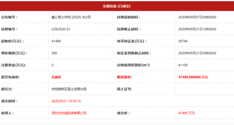 宏誠投資4.8億元競得惠州市仲愷區一宗商住用地 溢價率14.5%_台北室內設計