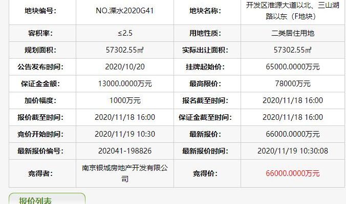 南京銀城房地產6.6億元競得南京溧水區1宗住宅用地 溢價率1.54%