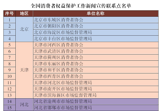 關於授予315個市場監管局、消協組織“全國消費者權益保護工作新聞宣傳聯繫點”的通知