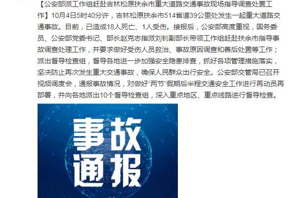 中新網10月4日電 據公安部交通管理局官方微博消息,10月4日5時40分許,吉林松原扶余市514省道39公 […]